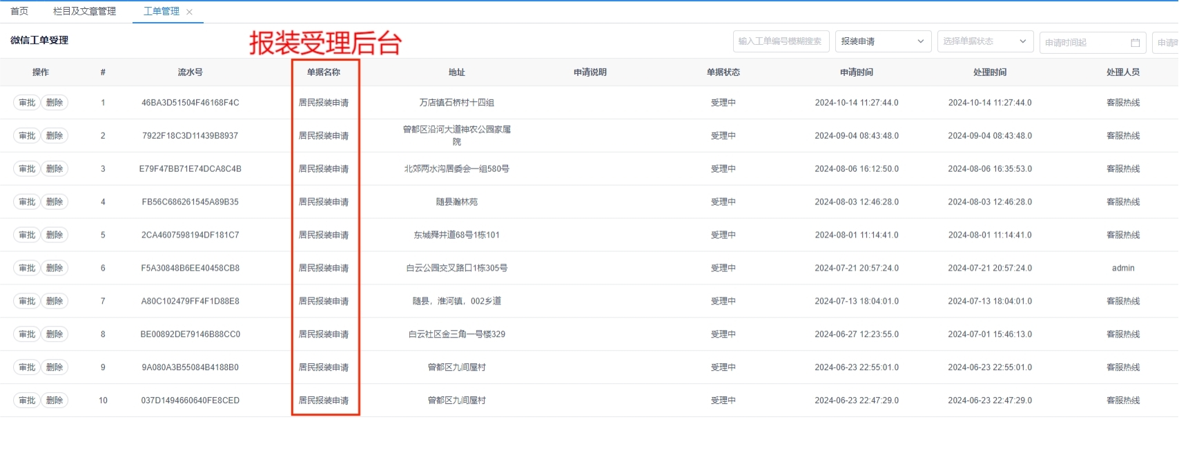 (1)水務(wù)集團服務(wù)后臺操作截圖